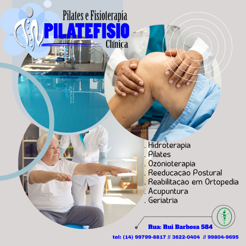 Fisioterapia em ortopedia, ozonioterapia, RPG, Pilates, acupuntura e atendimento domiciliar